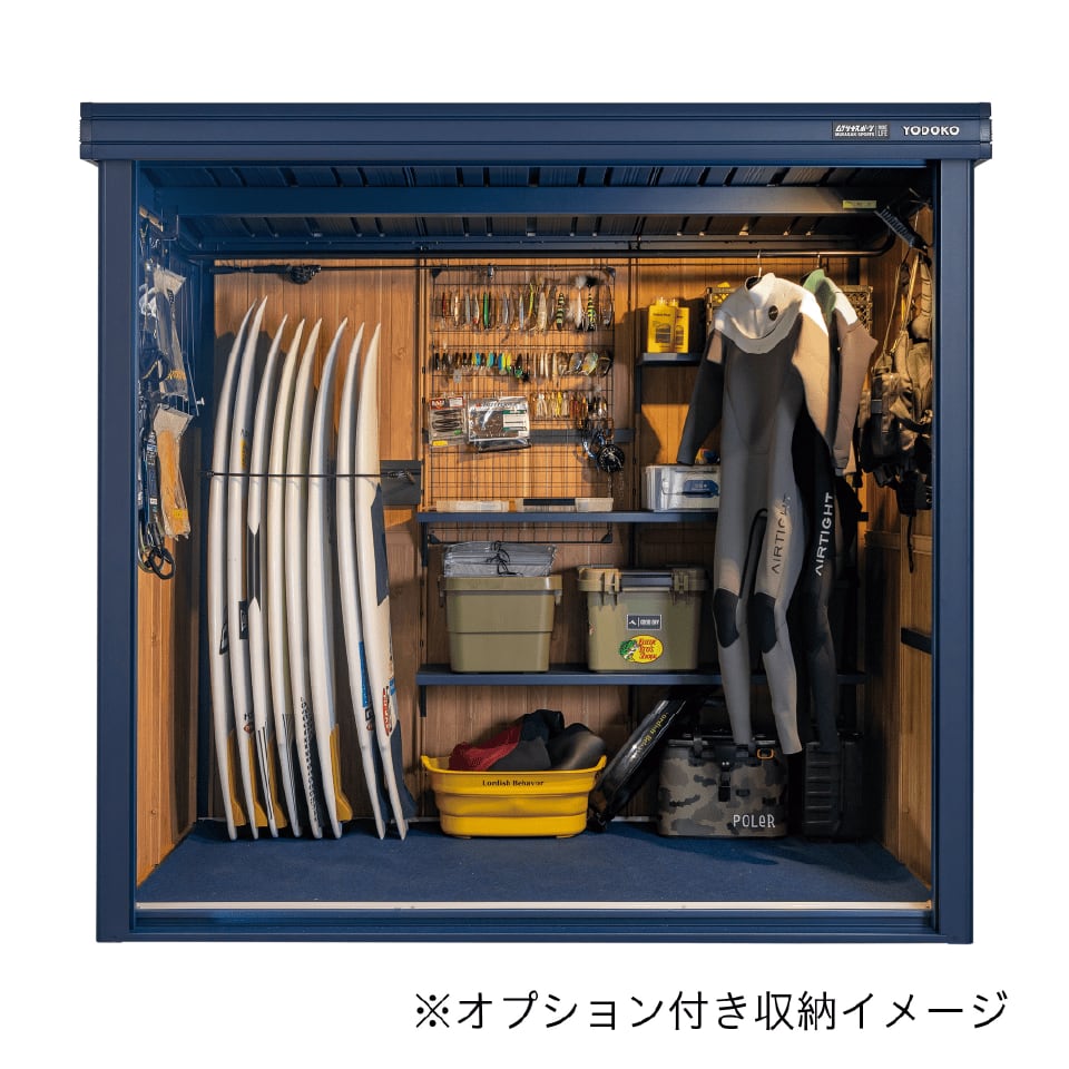 ※ウェットスーツやサーフボードなど海で使用する収納物は、塩分を十分に洗い流し、水気をしっかり乾燥させた上で収納をお願いします。オプションの小窓を設置し、換気を良くすることもおすすめいたします。