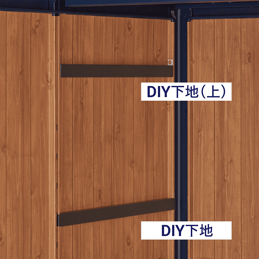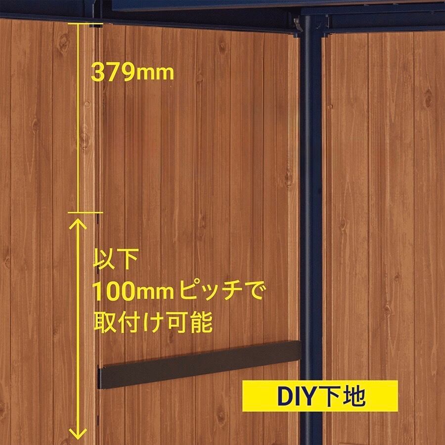 それぞれで物置に取付けられる範囲が異なりますので、下地を取付けたい位置に合わせてお買い求めください。