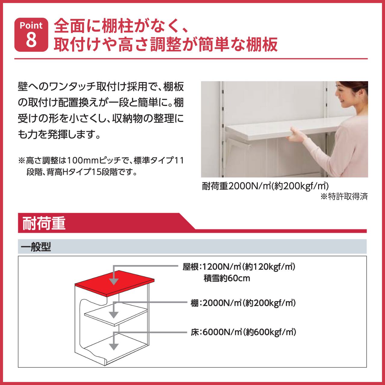 (棚板高さ調節は100mmピッチ)